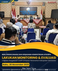 Wonosobo – Biro Perencanaan dan Kerjasama Kementerian ATR/BPN Lakukan Monev Capaian Pengukuran ILASPP di Kantor Pertanahan Kabupaten Wonosobo pada Rabu (26/11/2025).