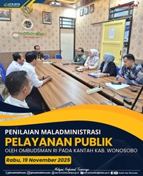 Wonosobo – Rabu (19/11/2025) Kantor Pertanahan Kabupaten Wonosobo mendapat kunjungan penilaian dari Ombudsman RI. Evaluasi ini dilakukan untuk melihat penerapan standar pelayanan, ketersediaa... Selengkapnya
